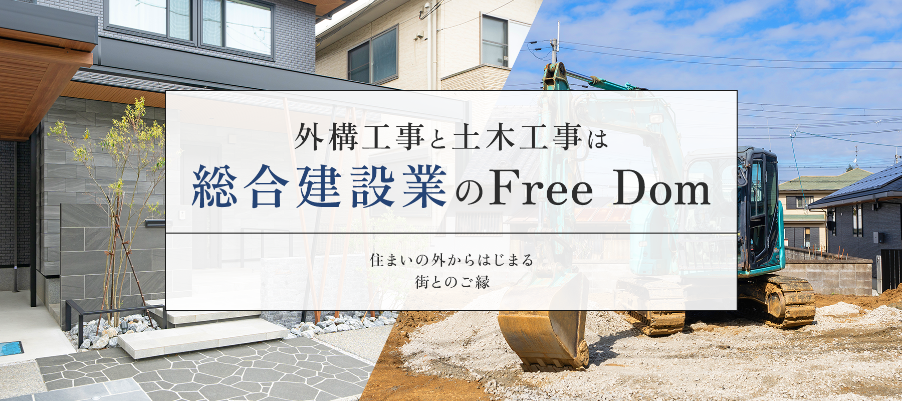 Free Dom(フリーダム)は、外構工事・土木工事に特化した地域密着型の建設会社です。
