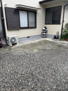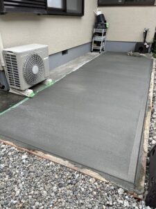 富士市で土間コンクリートの施工です。 施主様より既設の土間がポロポロしてしまうと ご相談があり、加えてバイク置き場として一台分 のみ土間のご依頼です。